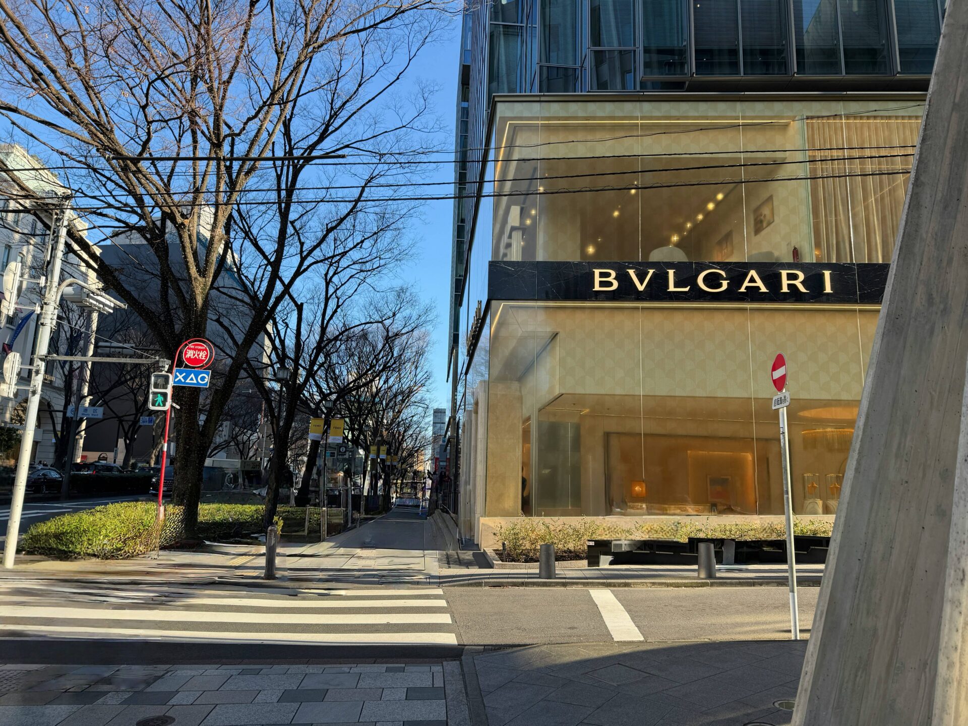 そのまま直進し「BVLGARI」の角を右折します