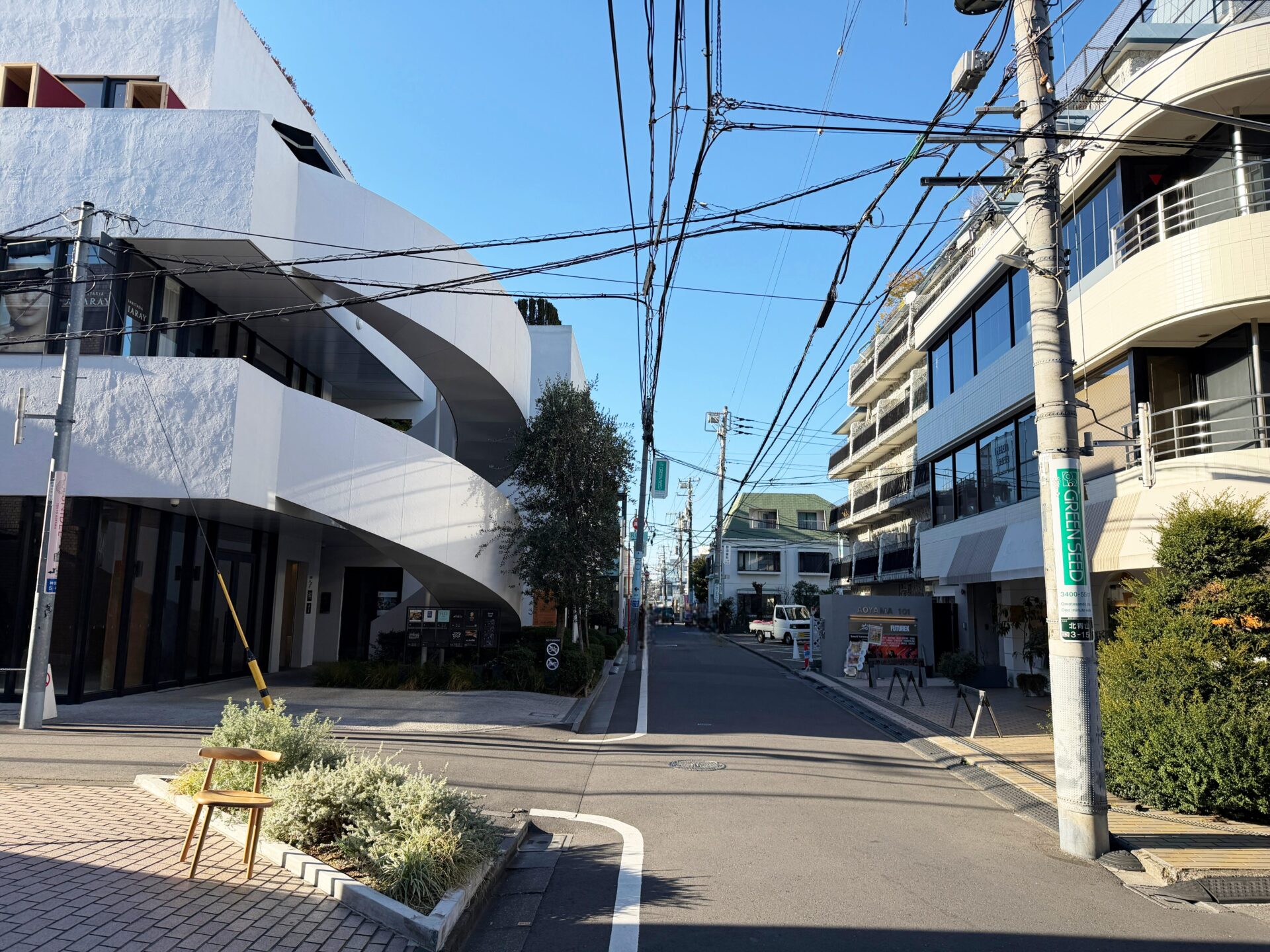 右手に見えてくる「GEMS AOYAMA CROSS」の2階が当院です