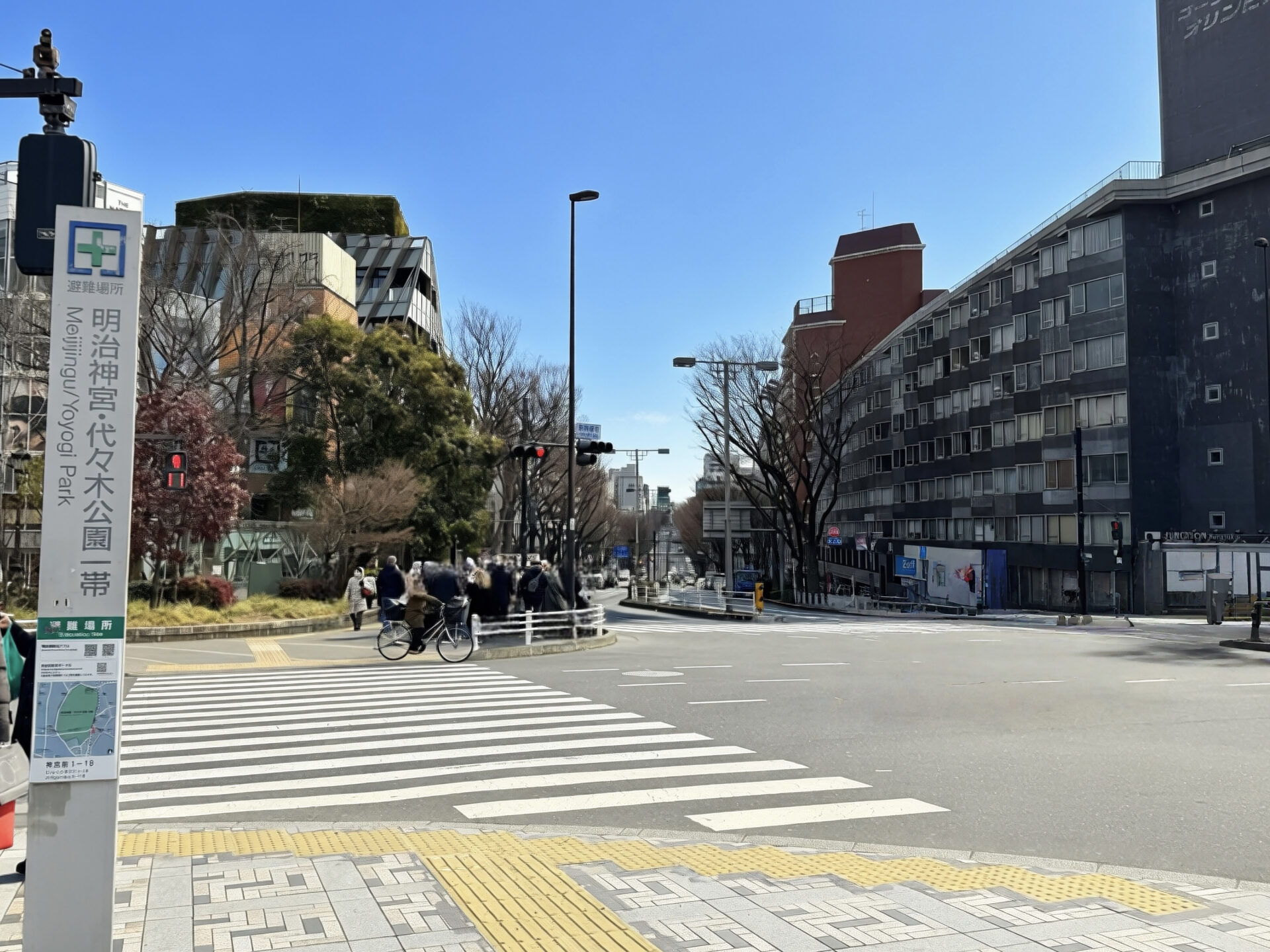 明治神宮前駅7番出口を出て、明治通りを渡ります