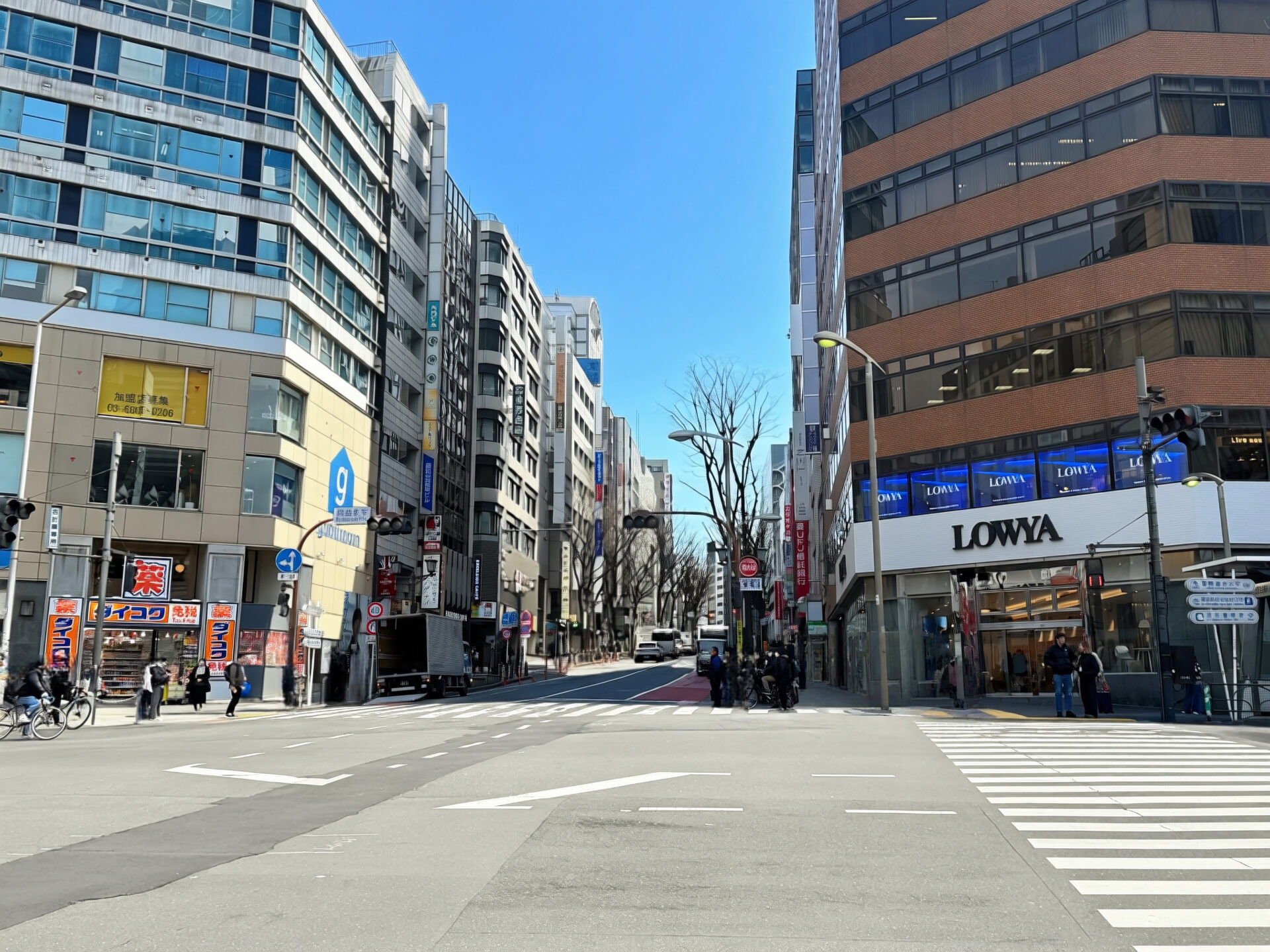 明治通りを渡り直進し、「BVLGARI」の角を右折します